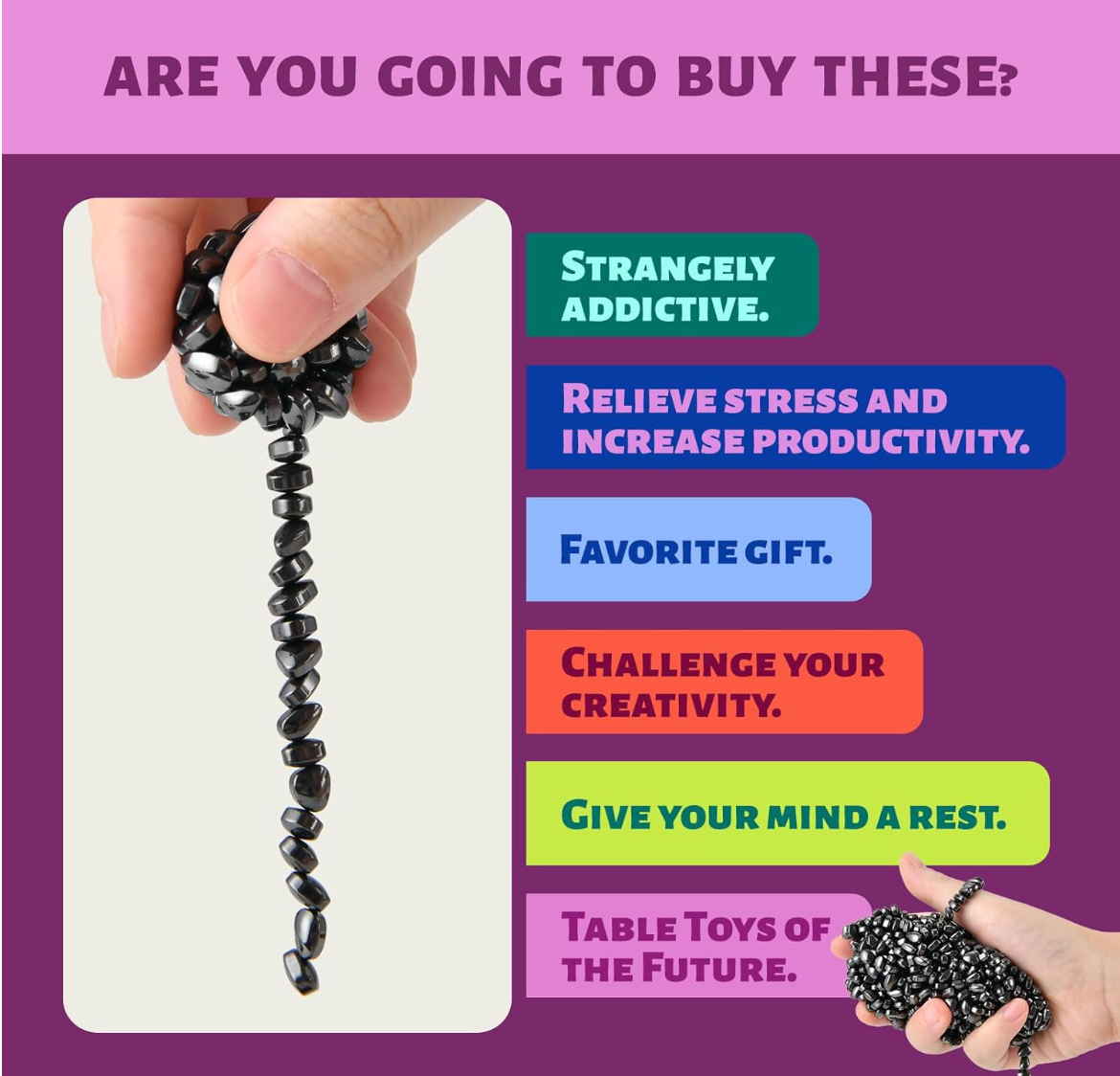 - Versatile Desk Toy: Magnetic Ferrite Putty features over 300 smooth, weak magnetic pebbles for endless sculpting and stress-relieving play.